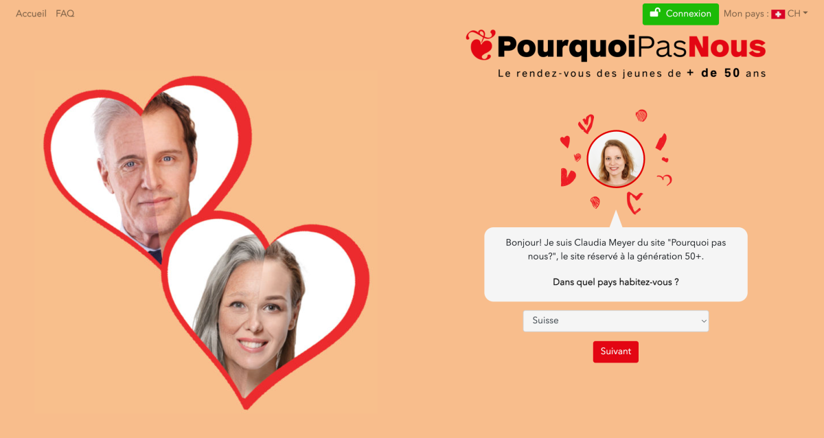 Les seniors sont de plus en plus nombreux et toujours plus actifs ! Nos sites Pourquoi-pas-nous.ch en Suisse Romande et Pourquoi-pas-nous.fr en France leur offrent ainsi un environnement adapté avec un agenda, des groupes de discussions et une messagerie directe pour favoriser les rencontres amicales et amoureuses !